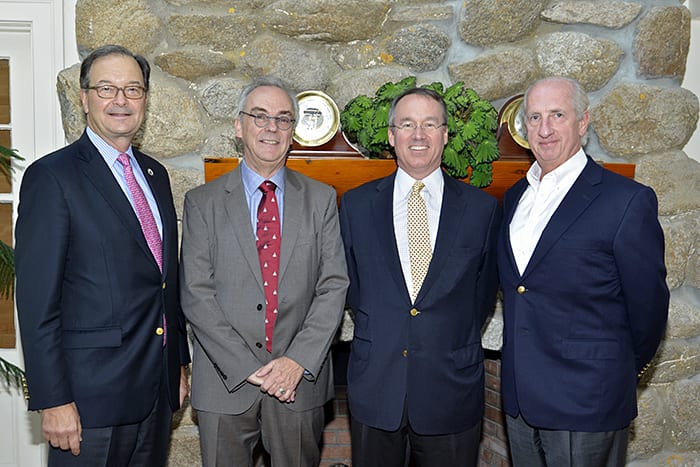 On October 8, WHOI elected a new slate of officers to its Board of Trustees and Corporation. The newly elected officers “have great passion for the ocean and have shown their deep affinity for Woods Hole Oceanographic Institution and its research through years of dedicated and active service,” said Newton P.S. Merrill, who has served as board chairman since 2007. The officers are Steven Hoch (far left), chairman of the corporation; David B. Scully (second from right), chairman of the board; and Jefferson Hughes (far right), vice chairman of the board of trustees. Mark Abbott (second from left) was appointed WHOI President and Director in June. (Photo by Jayne Doucette, Woods Hole Oceanographic Institution)
