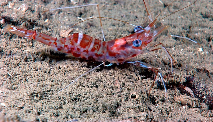 - A shrimp casts a wary, bulging eye on the camera. (Image courtesy of the NOAA Okeanos Explorer Program, Gulf of Mexico Expedition)