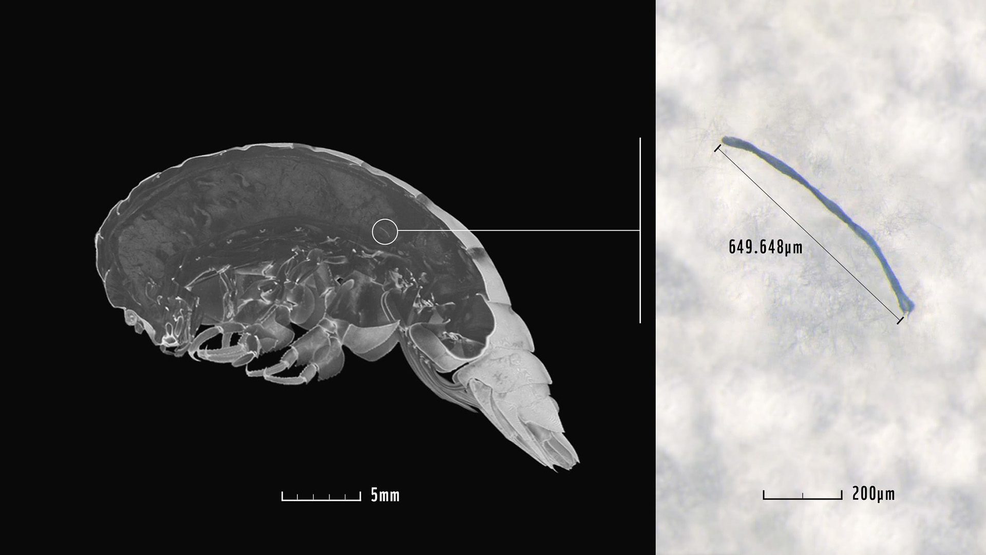 A scan of Eurythenes plasticus reveals a microplastic in its gut. (Image courtesy of Johanna Weston)