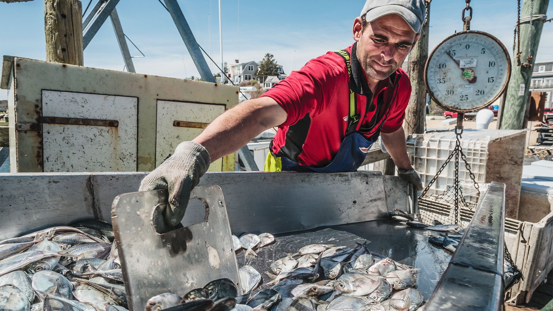 Fisherman Kurt Martin culls butterfish in Stage Harbor, Chatham, Massachusetts. (Photo by David Hills, Fishypictures.com, © David Hills)