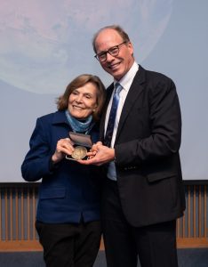 Ocean advocate Sylvia Earle was recognized with a Centennial Medal by WHOI President and Director Peter de Menocal. (Photo by ©Woods Hole Oceanographic Institution)