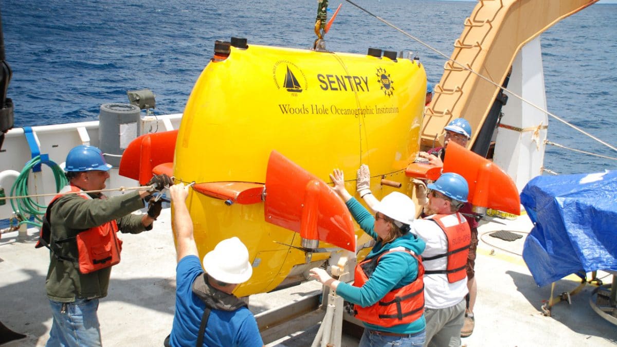 Sentry was designed and built at WHOI with funds from the National Science Foundation for use in oceanographic research. The vehicle, which is capable of operating in depths of 6,000 meters (~20,000 feet), carries a variety of scientific sensors and uses sidescan and other sonar to create detailed maps of the seafloor. It is frequently used to search for hydrothermal vent sites on the seafloor around the world. In 2010, it was used in the Gulf of Mexico by scientists to map and characterize the sub-surface plume of hydrocarbons flowing from the Deepwater Horizon well blowout. Sentry is also equipped with cameras to capture high-resolution still imagery.