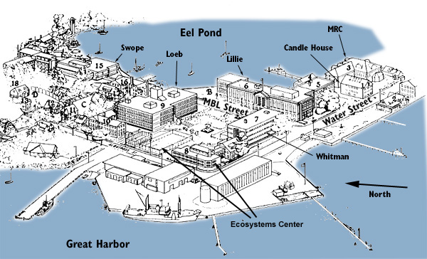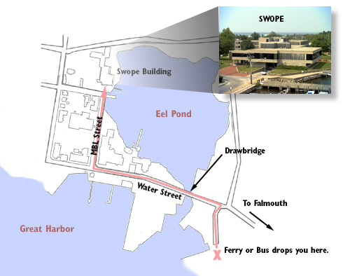 main road) through Woods Hole until you reach MBL Street, on your right.