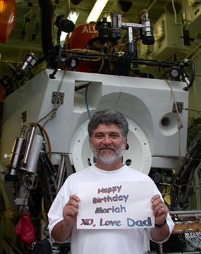 More tomorrow on the results of the dives. But there is very distressing news-- there are POLYWOGS on R/V Atlantis! Polywogs are low-life creatures that have never crossed the Equator on a ship. Not to worry- we'll root them out and be rid of them before we cross into King Neptune's realm.