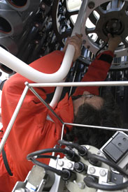 | Rob Palomares connects a cable inside the CTD rosette before the first test cast. |