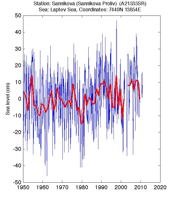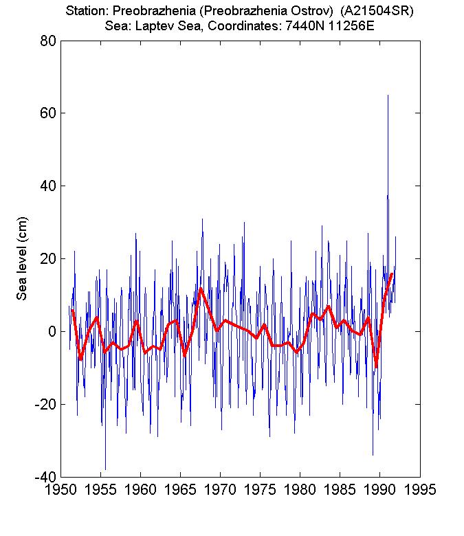 Click on a magenta station number to see a plot of the monthly mean sea level (blue) and annual mean sea level (red). Back to main data map.