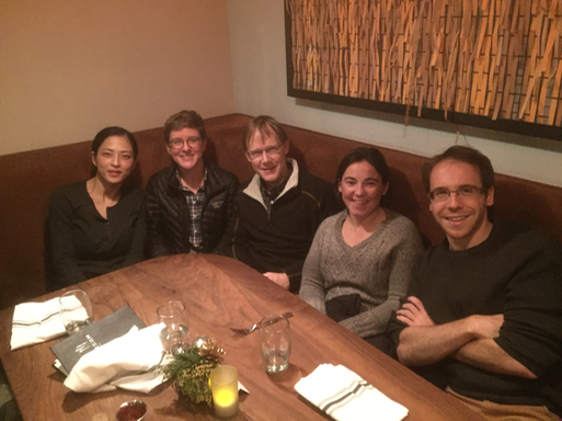 Past and present members of the WHOI Geodynamics group presented their research on seafloor morphology, subglacial hydrology, and mantle melting at the 2015 Fall AGU Meeting in San Francisco, CA. Pictured below from left-to-right are: I.Wada, L. Stevens, M. Behn, D. Wanless, & J.-A. Olive.