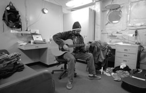 Since science operations were canceled, it was a welcome day of rest for most of the science party. Thanks to the marvels of satellite technology, half of the science party was glued to a laptop in the science lounge watching a webcast of the Boston Red Sox vs. Oakland A's game. A crowd also gathered on the bridge to watch Healy meeting the fury of the gale. Every few minutes the ship would hit a particularly large wave at just the right moment, sending spray flying as high as 70 feet in the air. It was an incredible sight, and several crewmembers videotaped the experience from the safety of the bridge. We also gained a new appreciation for how stable the Healy is in rough seas. A smaller vessel would have been lost in the 15 foot wave troughs today, but the Healy cruised along with only minor rolls and pitches.