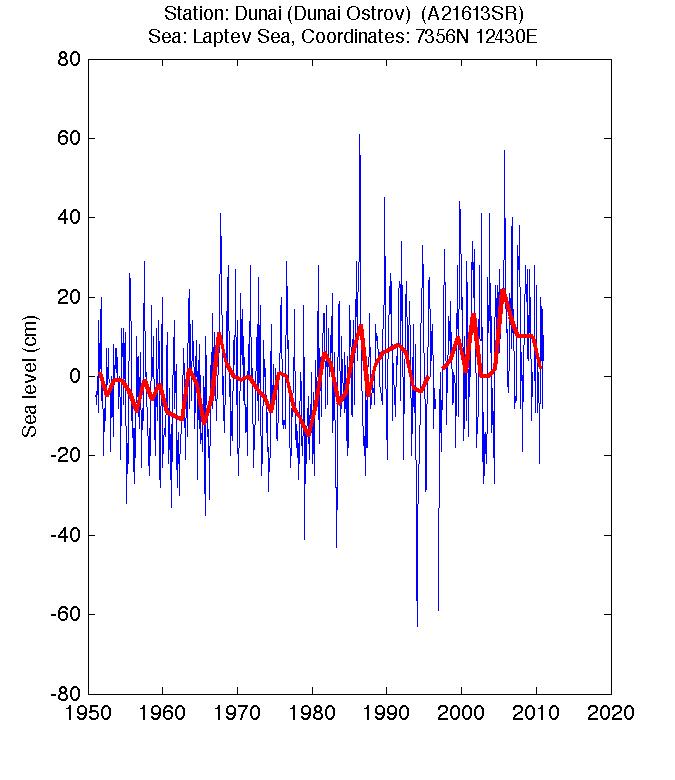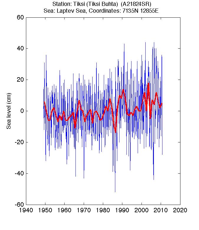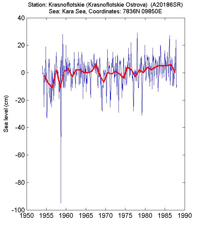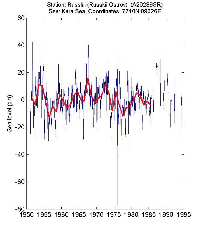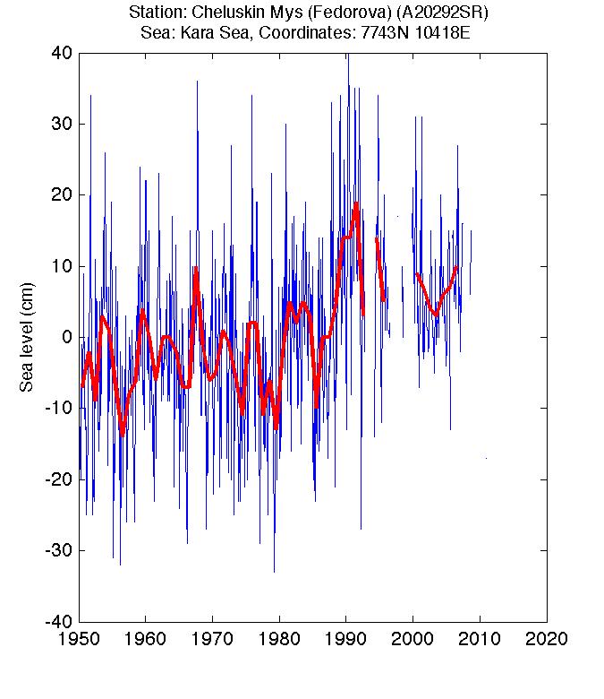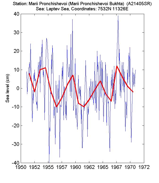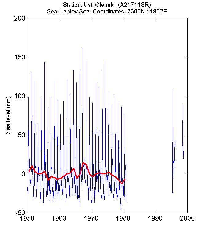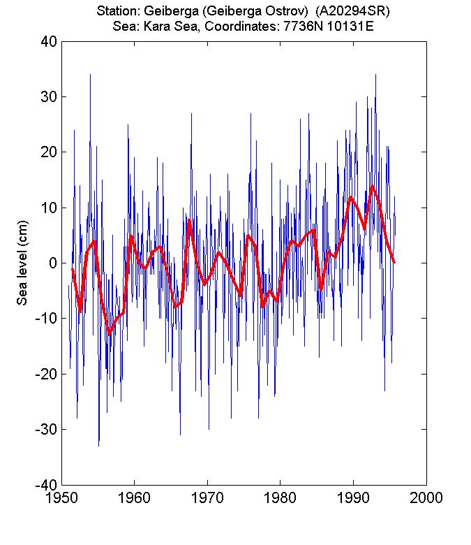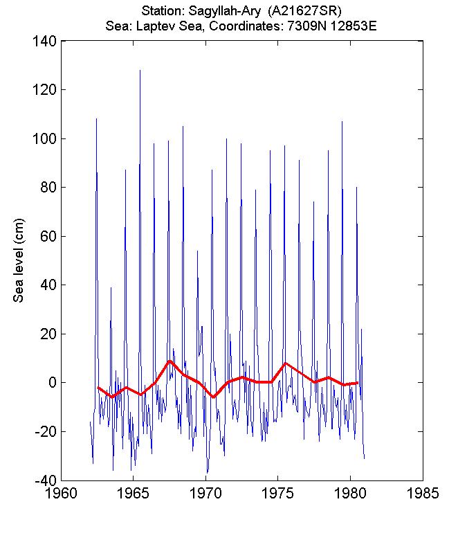 Click on a magenta station number to see a plot of the monthly mean sea level (blue) and annual mean sea level (red). Back to main data map.