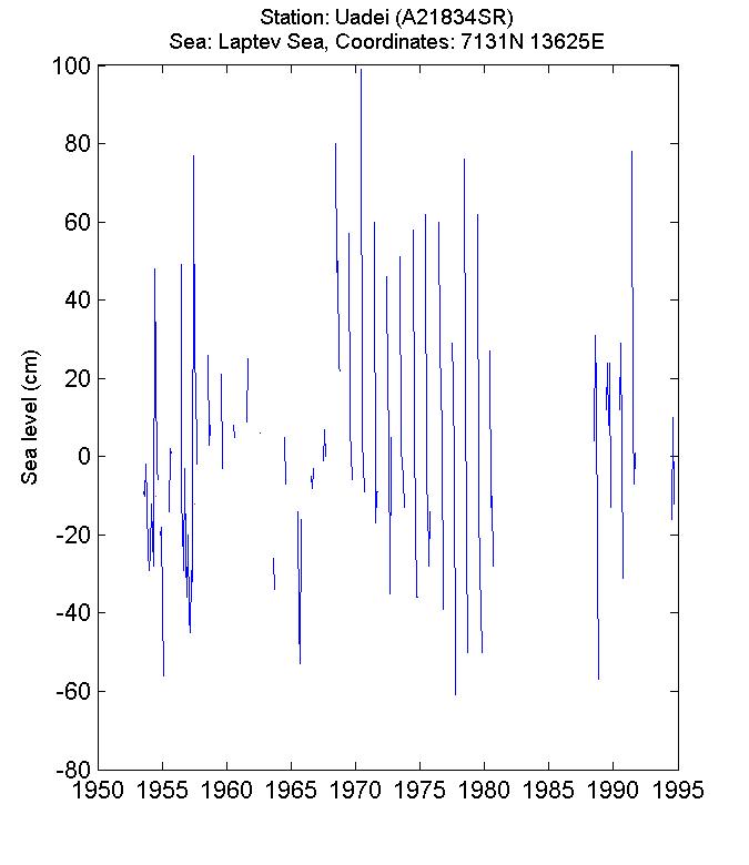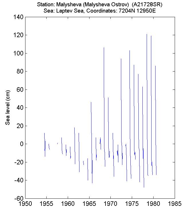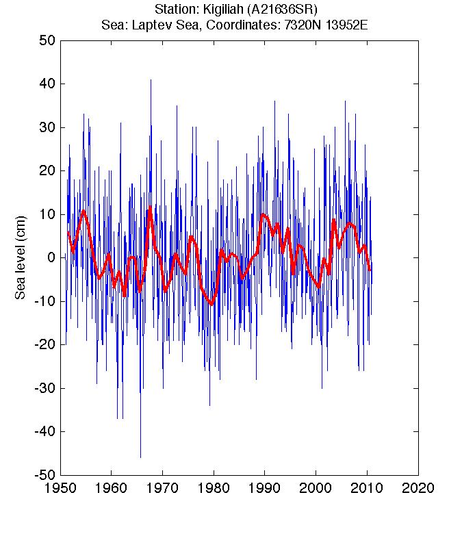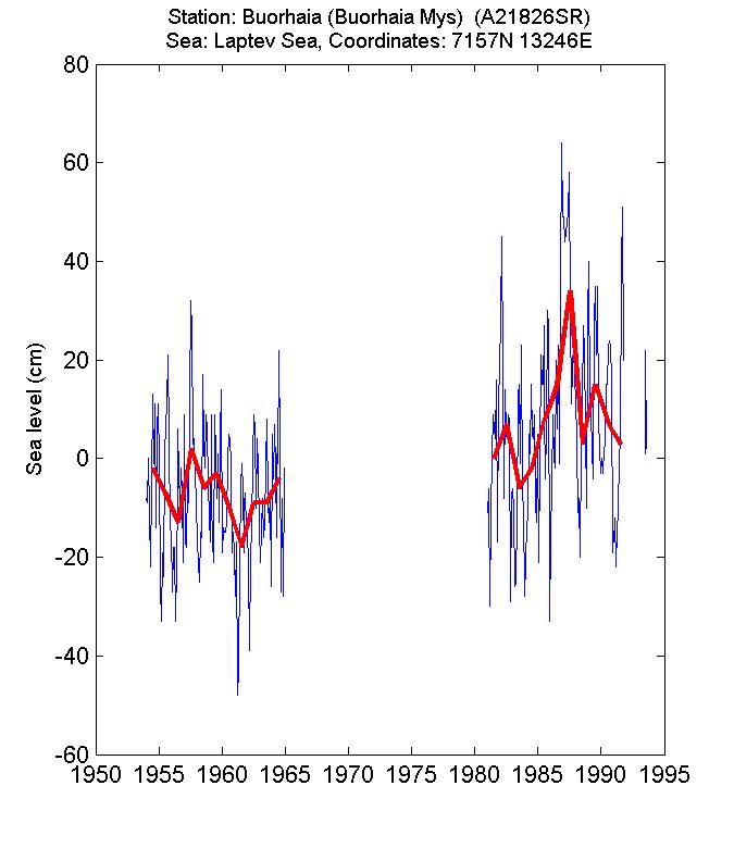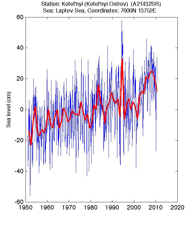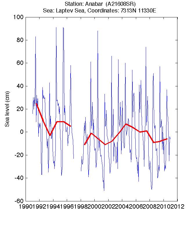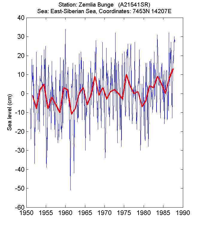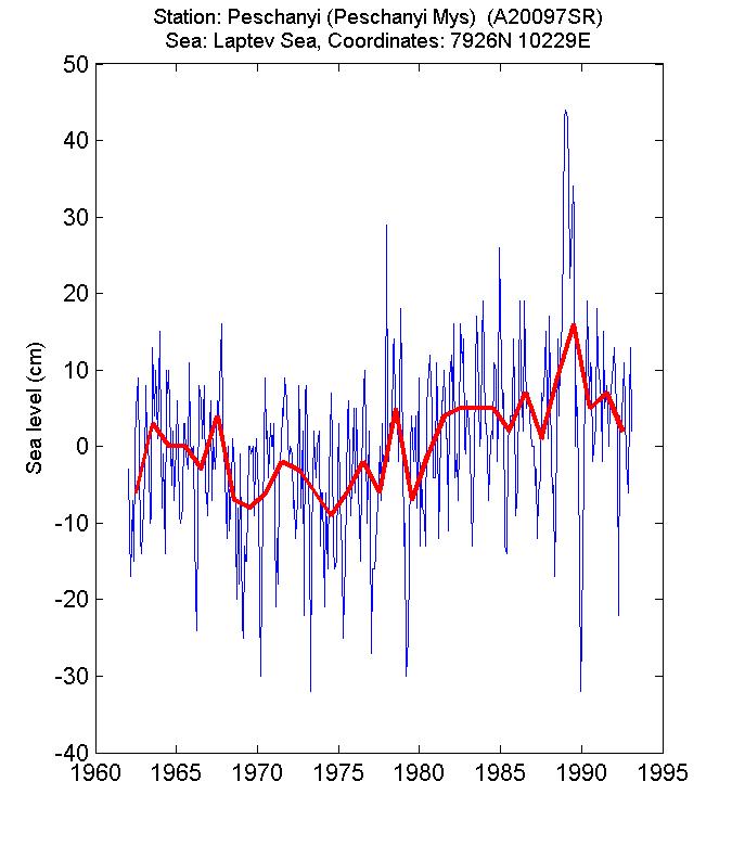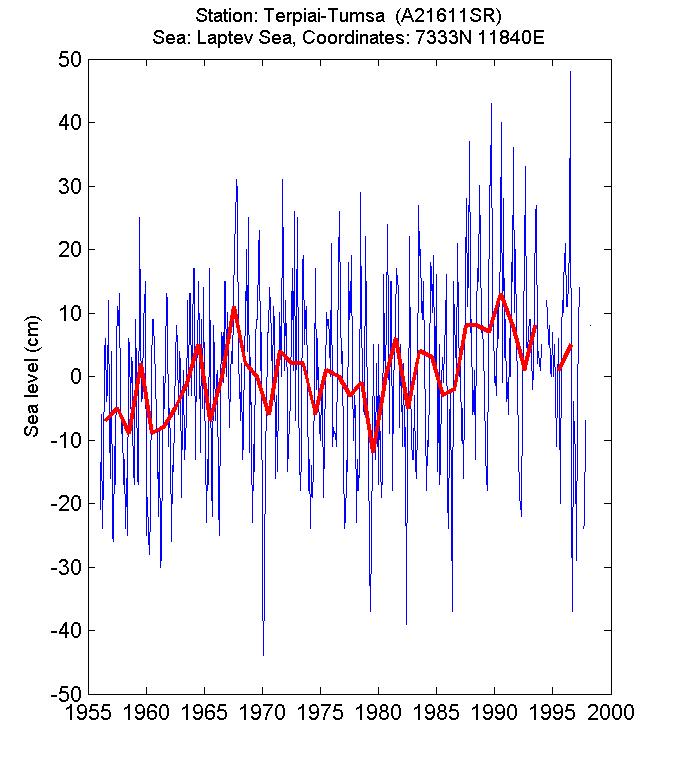 Click on a magenta station number to see a plot of the monthly mean sea level (blue) and annual mean sea level (red). Back to main data map.