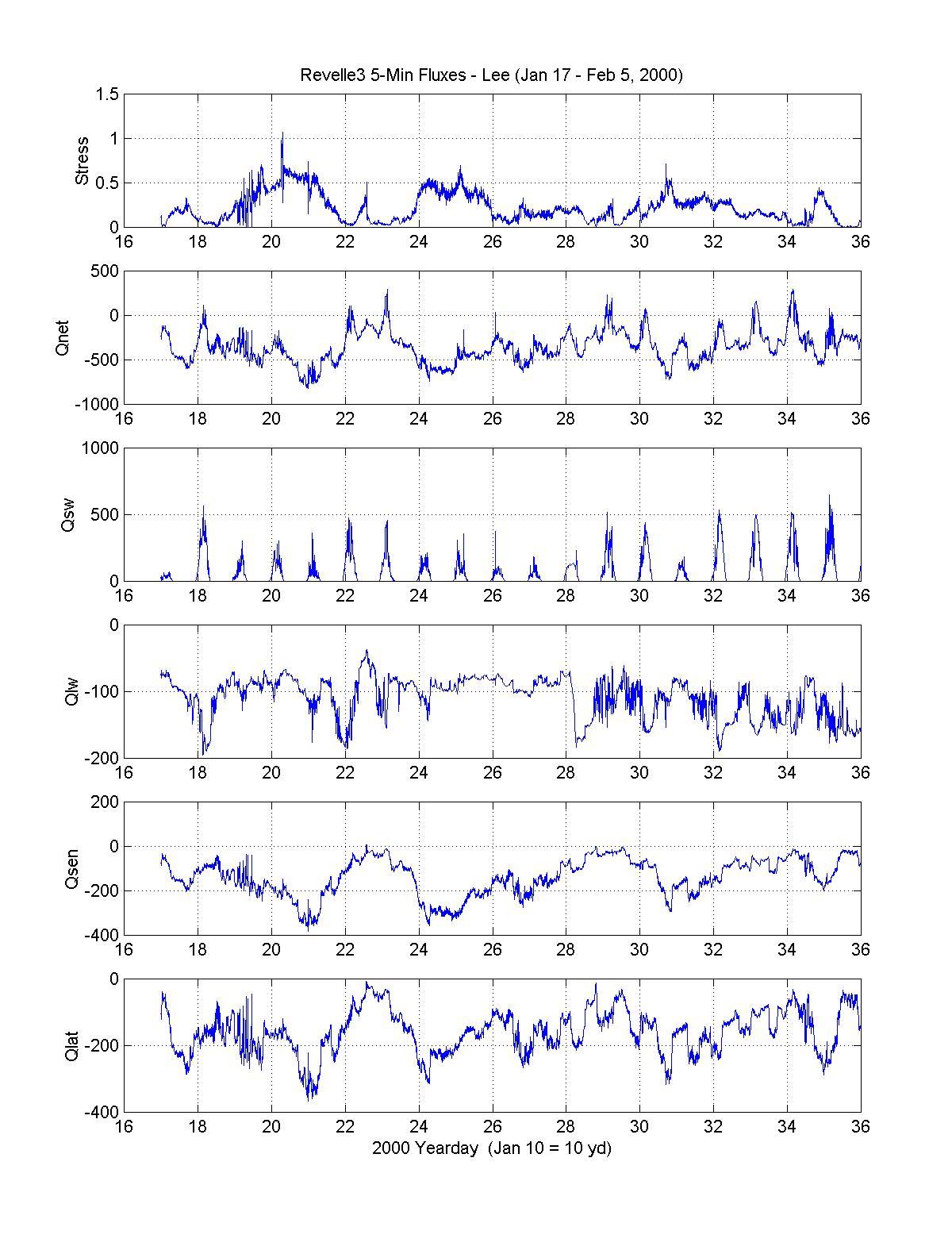 4. Surface fluxes during the Revelle winter cruise. From the top,