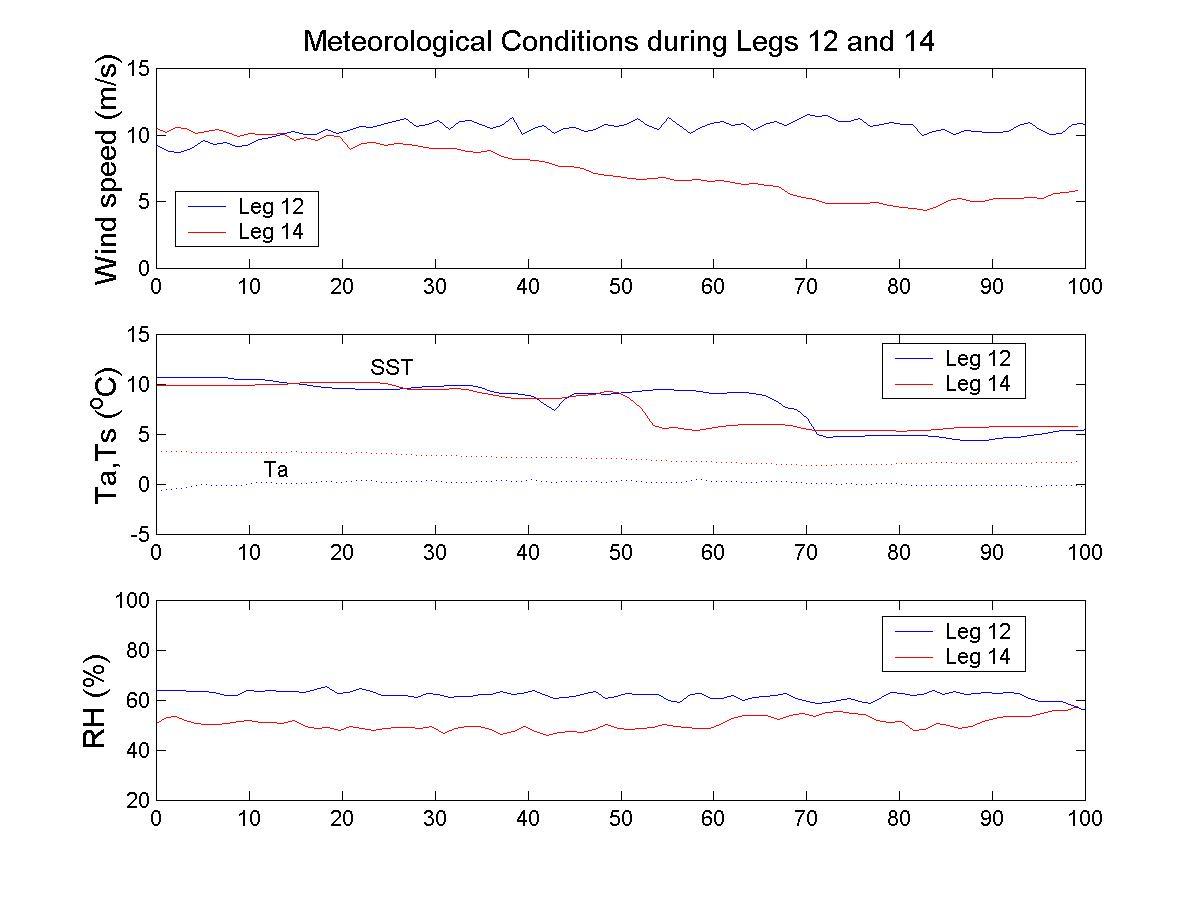 Figure 6. Meteorological conditions and surface fluxes during legs 12 and