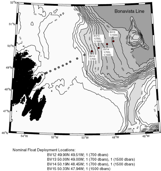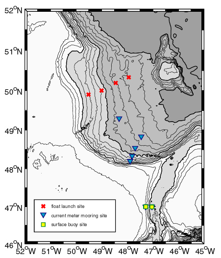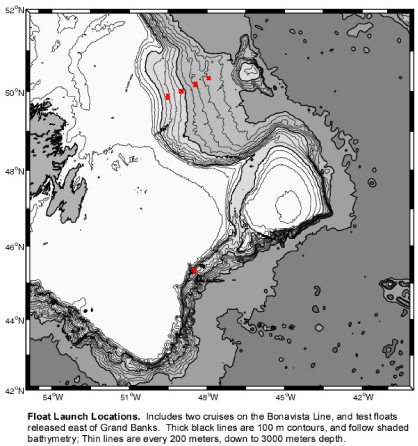 floats in the Labrador Sea and around the Grand Banks into the Newfoundland Basin. The first cruise was on the WHOI R/V Oceanus: