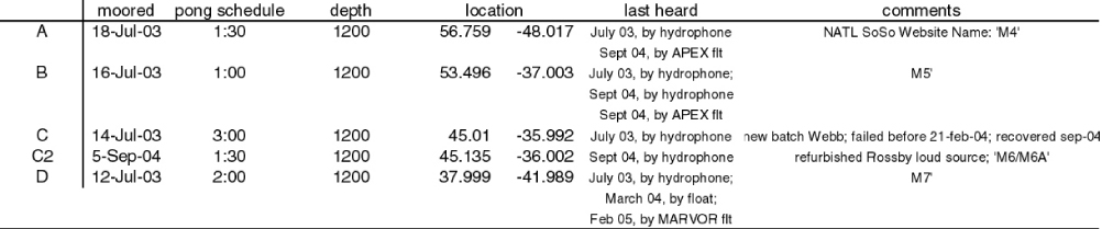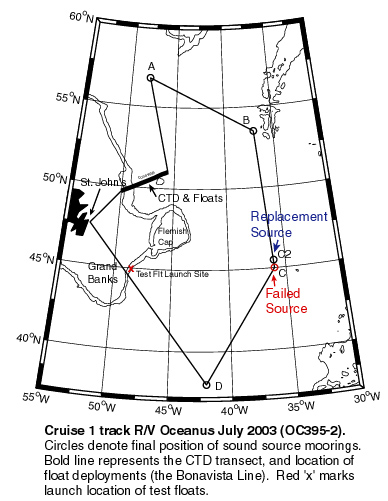 on this cruise sound source array was moored, CTD stations were taken, and floats deployed. Each subsequent cruise was/will be