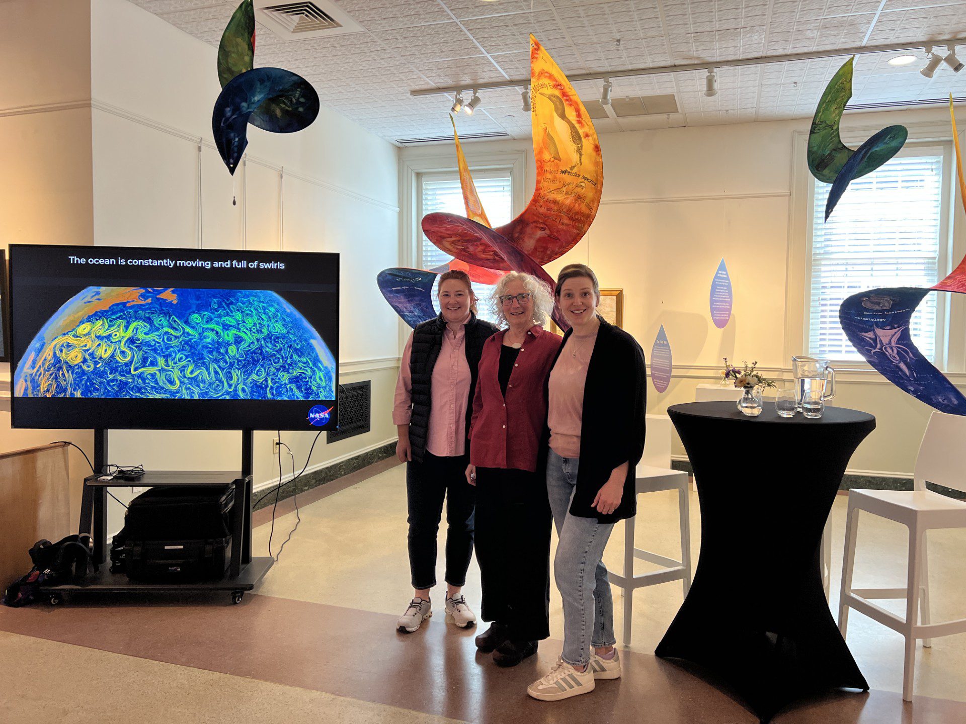 Svenja Ryan and Caroline Ummenhofer at a joint public talk with artist Deb Ehrens at the Cultural Center of Cape Cod on April 11, 2026, for programming for their exhibit “Ocean Fever” that is showcasing Ehrens’ kinetic sculptures representing marine heatwaves and their impacts. The “Ocean Fever” exhibit is on until April 25 in South Yarmouth, MA.